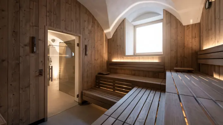 Die Spa Belmira des Posthotel Lamm bietet den Gästen einen eleganten Saunabereich mit Gewölbedecke – eine einladende und entspannende Umgebung, in der man innere Ruhe finden und sich dem Wohlbefinden widmen kann.